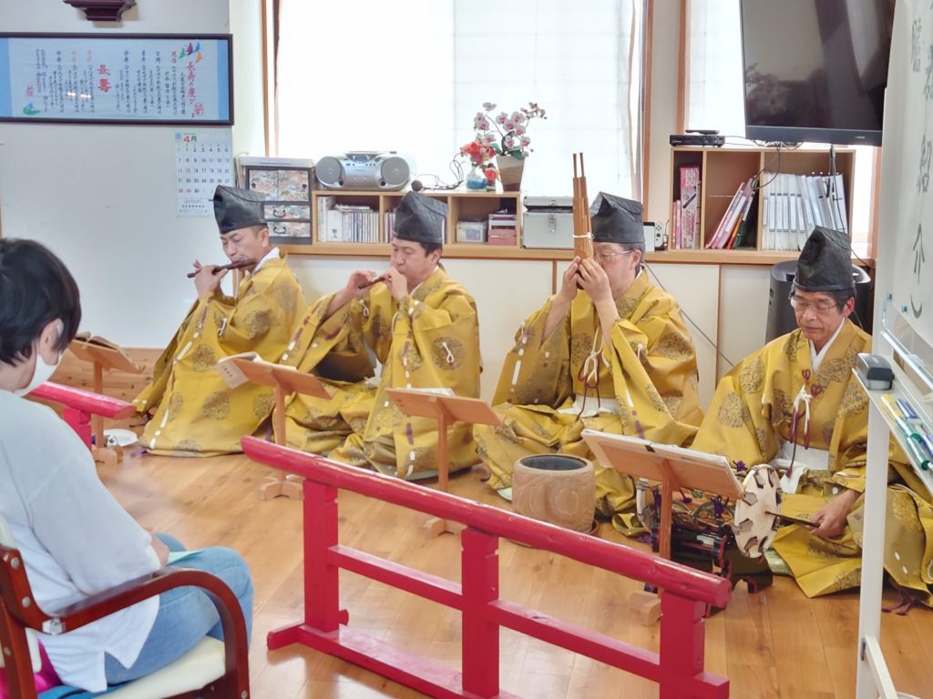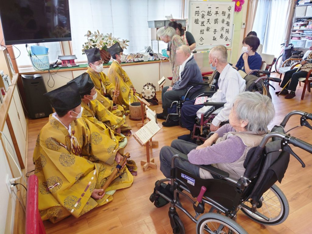 館山市佐野にある「コミュニティケアこまくさ」で雅楽演奏会が開催され、入居者様やご利用者様、ご家族様、職員の皆さんが日頃あまり耳にすることのない音色に耳を傾けました。