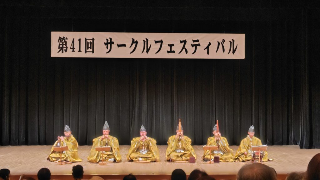 サークルフェスティバルという舞台ではありましたが、6人の楽人が楽服を身に纏い、息を合わせて奏でる「古都の音色」は、集まった多くの方々の心を惹きつけ、会場に何とも言えない厳かで優雅な空間を創り出しました。